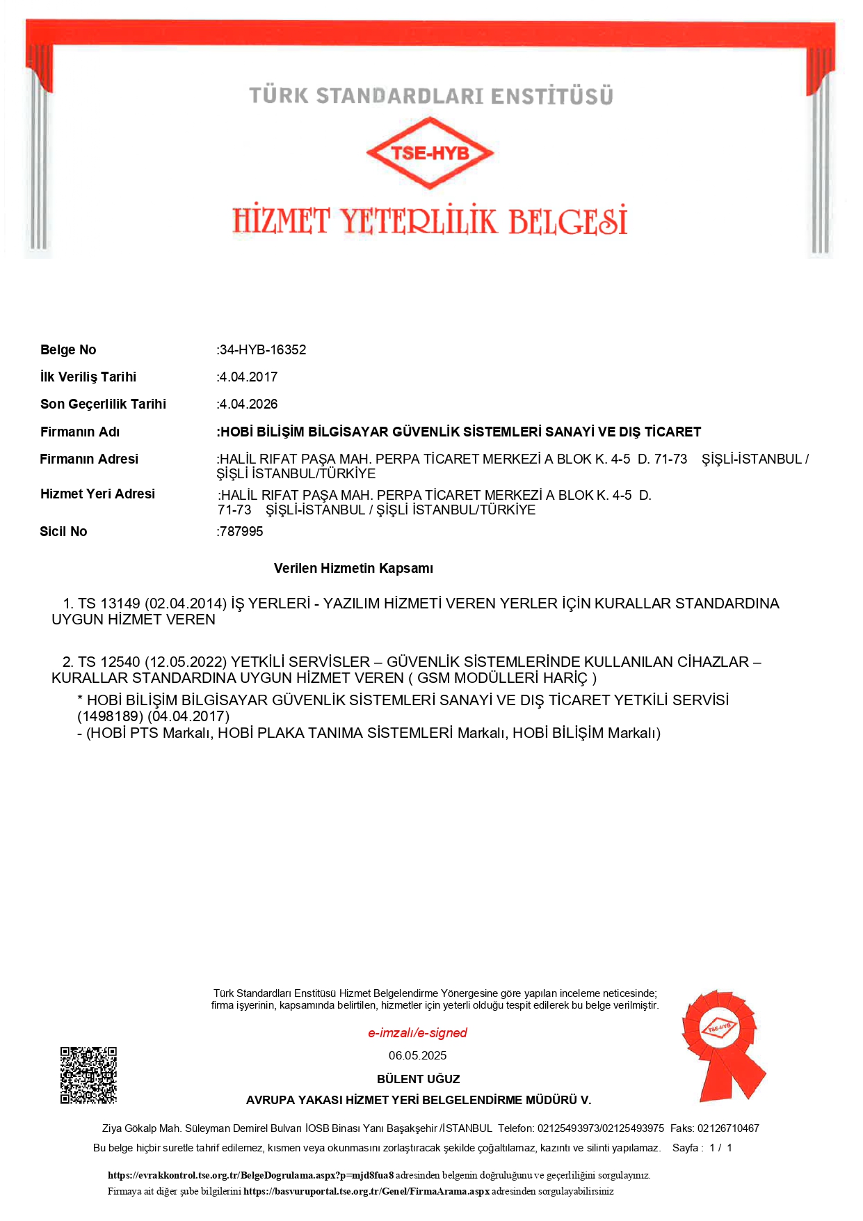 TSE-HYB Hizmet Yeterlilik Belgesi